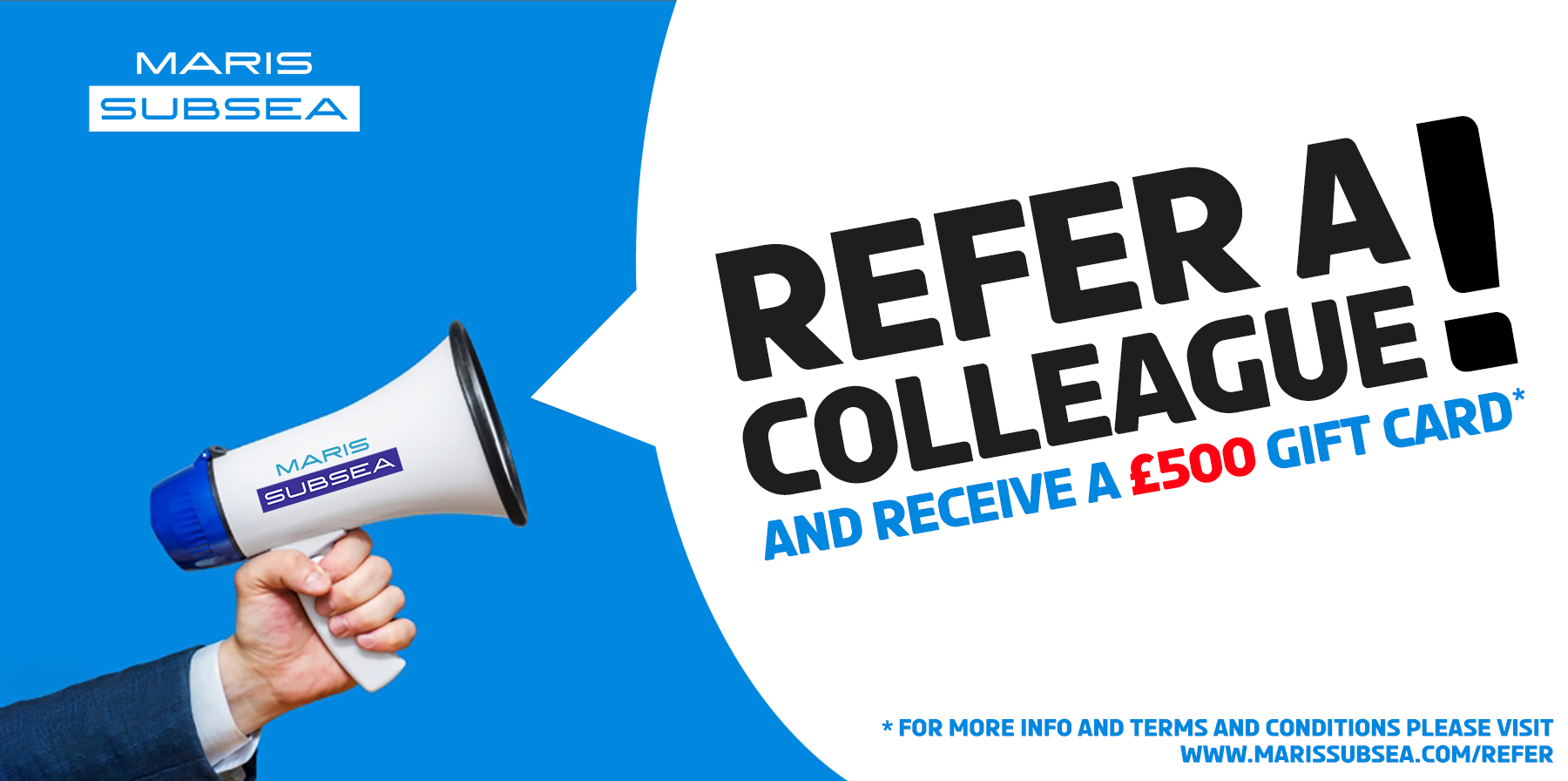 If you are making the referral, please ensure that you do so with the candidate’s permission and submit the candidates CV to info@marissubsea.com and please reference ‘Referral Scheme’ in the Subject line.